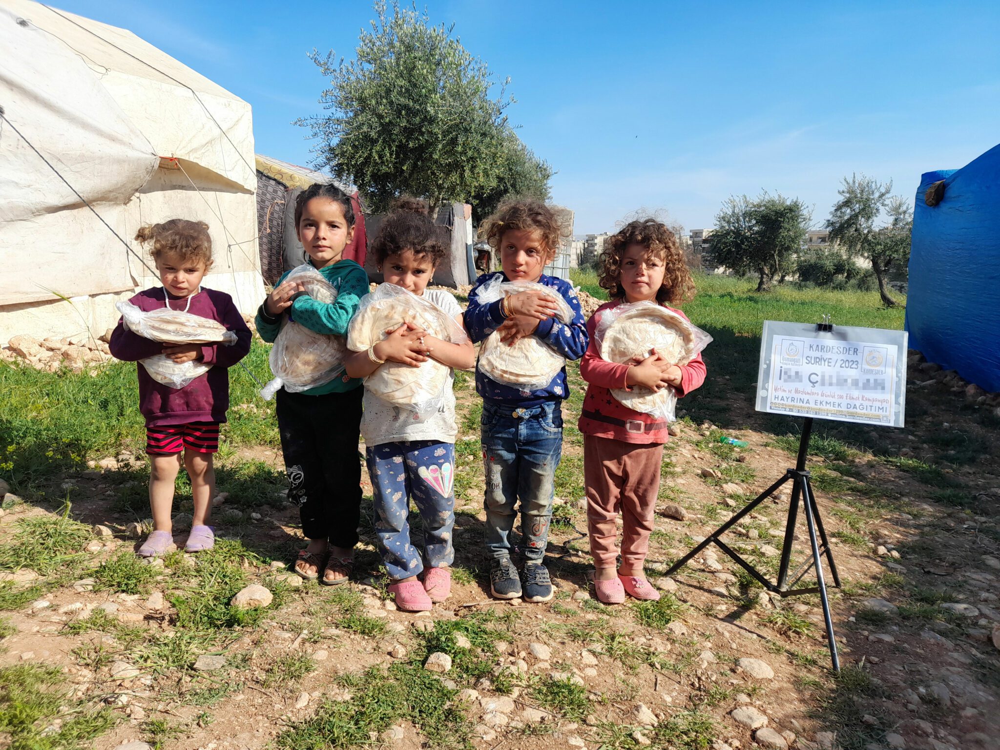 Çadır kentlerde yaşam mücadelesi veren yetim ailelerine sizlerin bağışları olan ekmekleri titizlik ile ulaştırmaya devam ediyoruz… Allah hayır sahibi İ** Ç**’den kabul etsin…