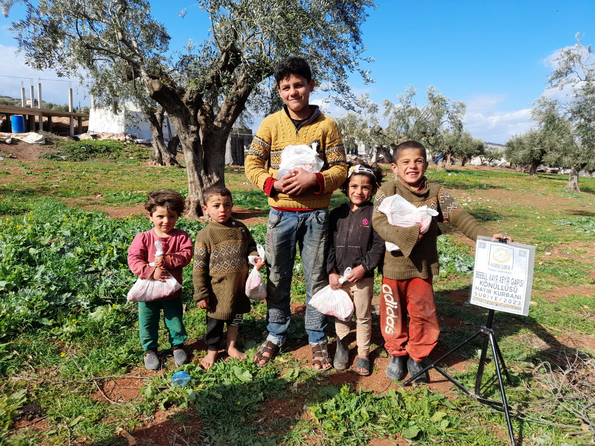 Suriye’de kesilen kurbanları mazlum ve yetimlerin sofralarına taşımaya devam ediyoruz. Beebul Xayr Xeyir Qapısı adına gönderilen kurbanları, ihtiyaç sahibi Suriyeli kardeşlerimize ulaştırdık… Allah hayır sahiplerinden kabul etsin…