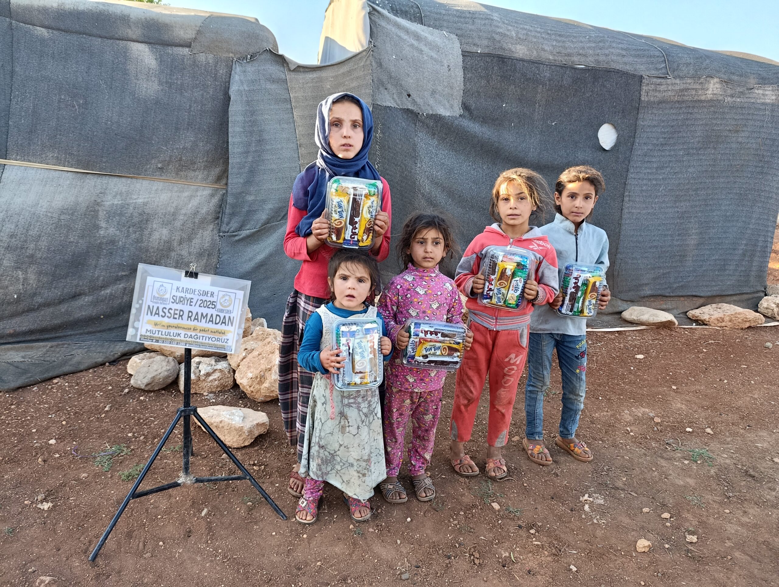 Suriye’de çadır kentlerde kalan savaş mağduru miniklerimize mutluluk paketi ikramlarınızı ulaştırıyoruz… Nasser Ramadan, Nevroz Akyıldız ve Zühre Sebil hayrına olan mutluluk paketi bağışlarını yetimlerimize dağıttık. Allah kabul etsin…Mutluluk Paylaştıkça Çoğalır