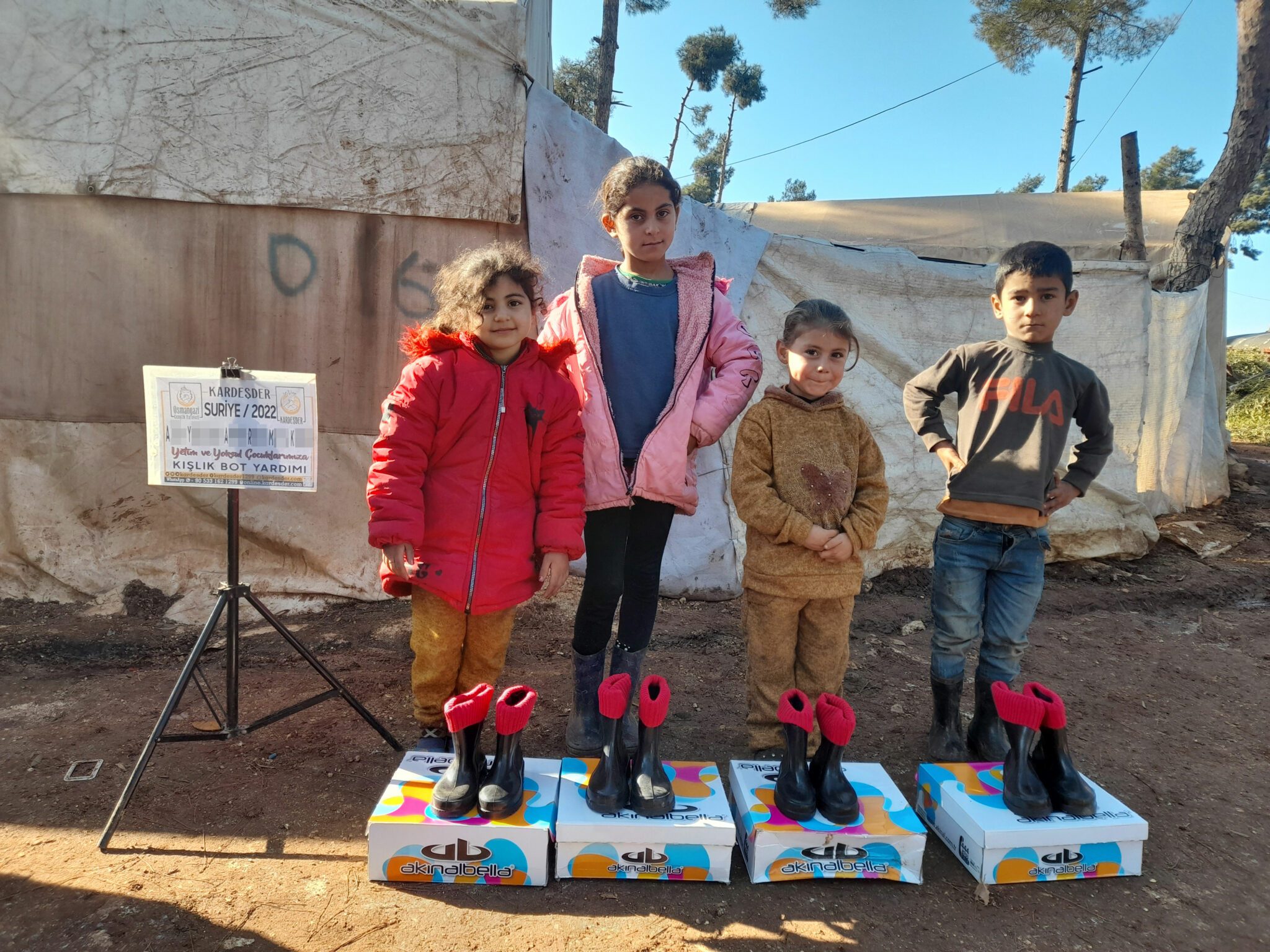 Yetim ve mazlumların ihtiyaçlarını gidermeye devam ediyoruz… Siz değerli bağışcılarımızın göndermiş olduğu kışık botları yetimlerimize ulaştırdık… Allah hayır sahibi A** Y** A** R** M** K**’den kabul etsin…
