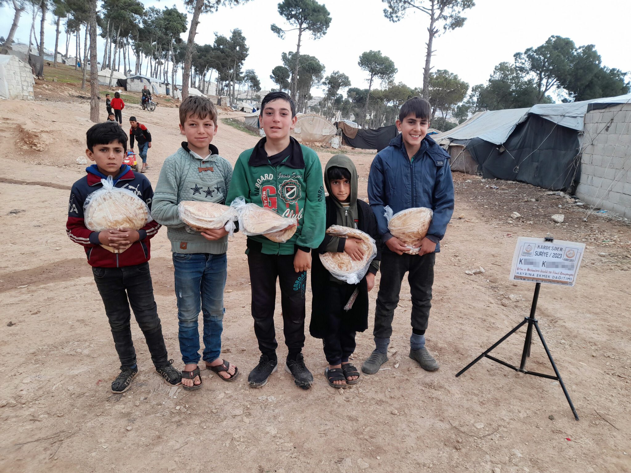 Çadır kentlerde yaşam mücadelesi veren yetim ailelerine sizlerin bağışları olan ekmekleri titizlik ile ulaştırmaya devam ediyoruz… Allah hayır sahipleri K** K** ve S** B**’den kabul etsin…