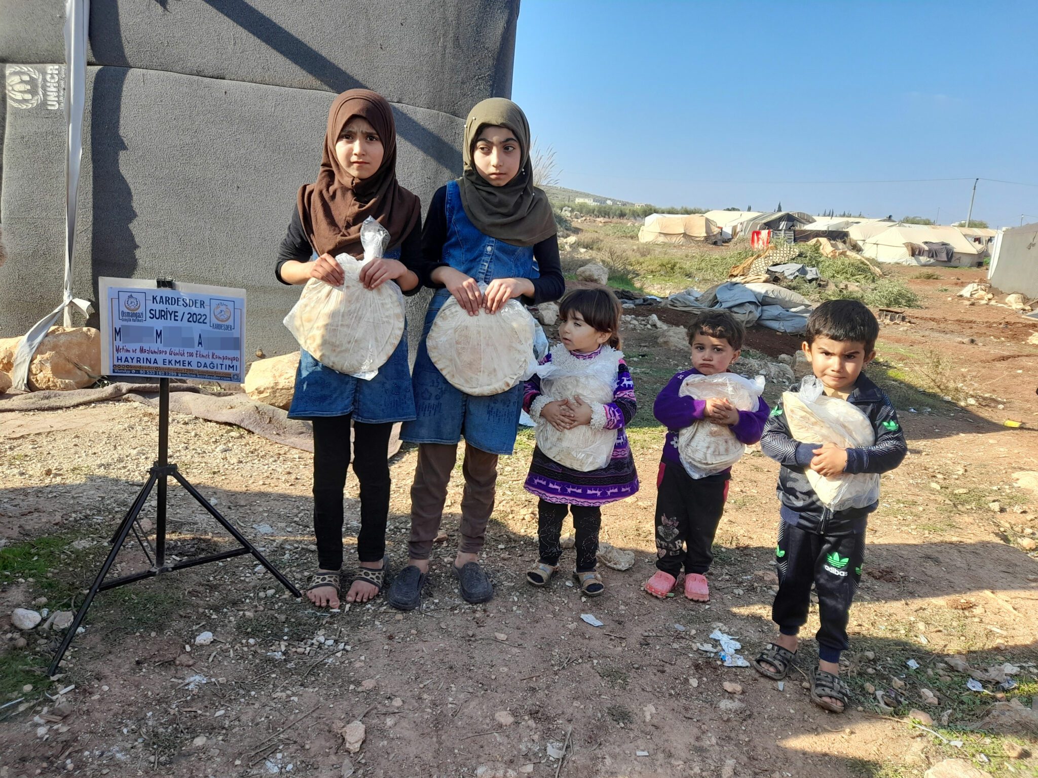 Çadır kentlerde yaşam mücadelesi veren yetim ailelerine sizlerin bağışları olan ekmekleri titizlik ile ulaştırmaya devam ediyoruz… Allah hayır sahibi M** M** A**’dan kabul etsin…